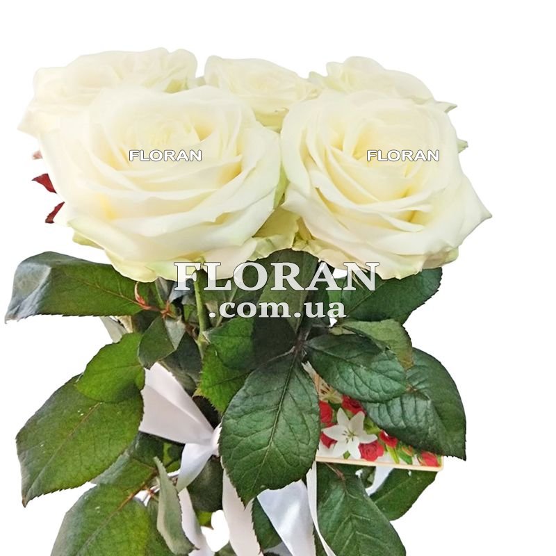 White roses in a bouquet of five flowers create an elegant and sophisticated impression. They can become a symbol of a special moment, emphasizing its significance and uniqueness. A bouquet of five white roses is a great way to express your sincere feelings, wishes and support.
