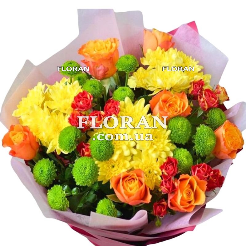 - Green chrysanthemums: 3 green chrysanthemums will add freshness and natural greenery to the bouquet. They will serve as a wonderful background for other colors and create a harmonious combination with the autumn mood.