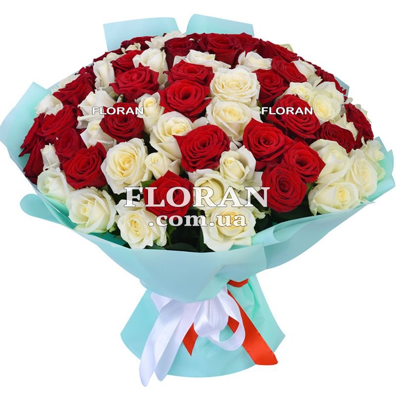 Beautiful bouquet of red and white roses