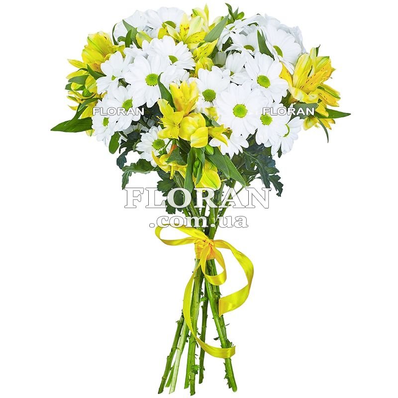 - 5 yellow alstroemerias. Yellow color symbolizes joy, sunny mood and energy. Yellow alstroemerias will add brightness and fun to the bouquet.