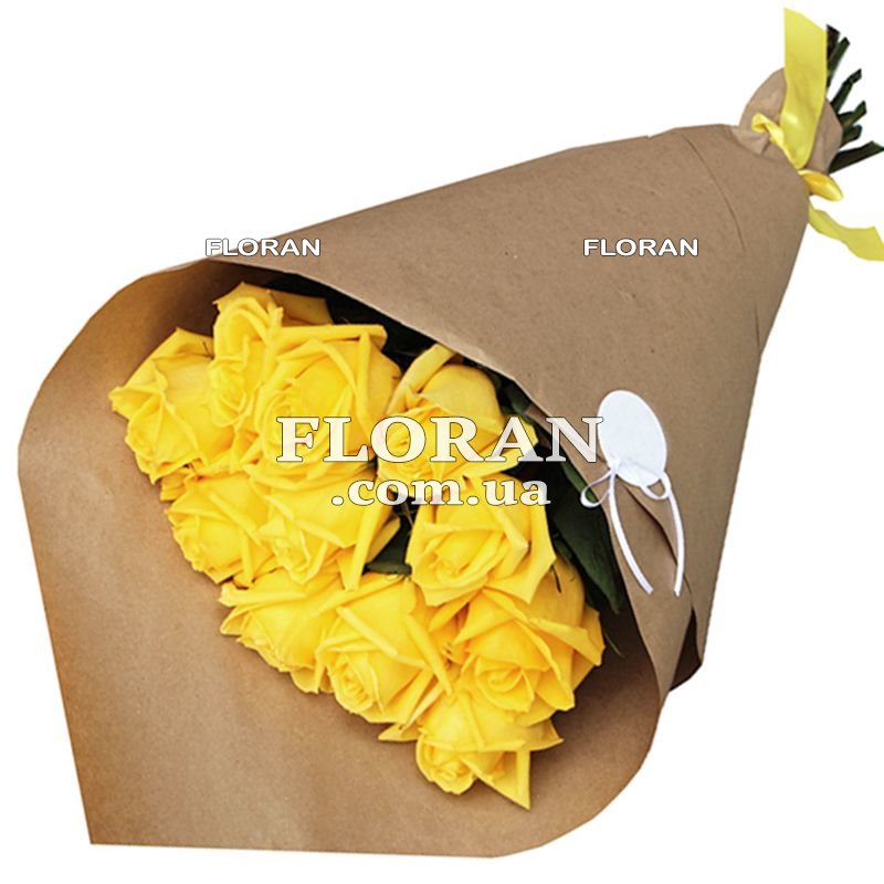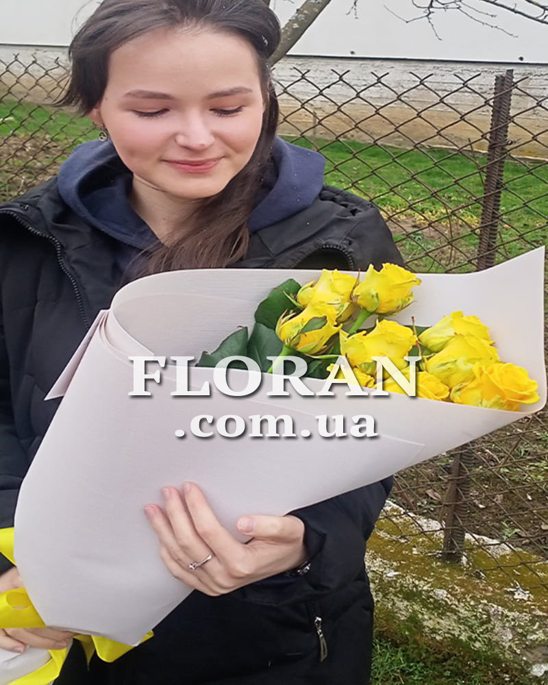 Bouquet of 11 yellow roses - product code FL-2591 - is a warm and bright gift that expresses joy, friendship and goodwill. The yellow color of roses symbolizes joy, optimism and friendship, making this bouquet ideal for giving to friends, family and colleagues. This bouquet can be suitable for many occasions, from a birthday to a thank you for your help. It can also be a wonderful gift for encouragement and inspiration. Packaging or ribbon gives the bouquet a complete and well-groomed look. A bouquet of 11 yellow roses will bring bright moments and improve the mood of the recipient, making the day special.
