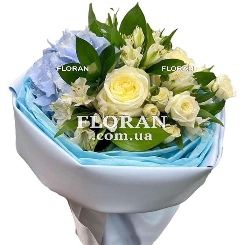 Bouquet of blue and white flowers - product code FL-1076. Here is an amazing bouquet of blue and white flowers: