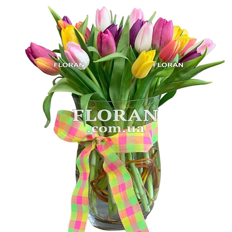 Bouquet of colorful tulips