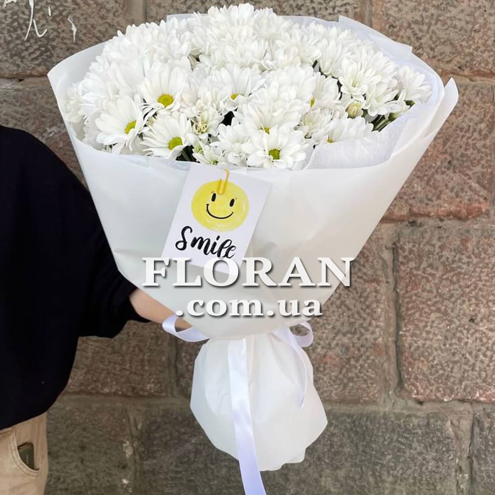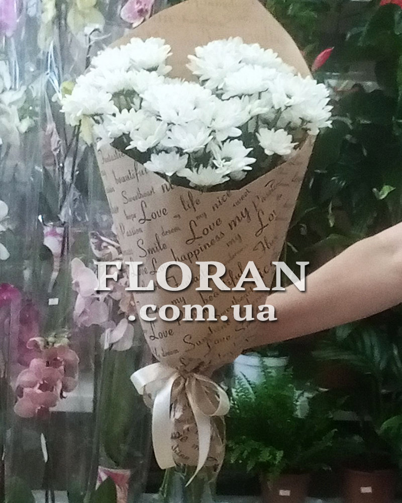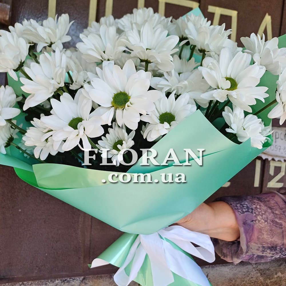 Bouquet of daisies - product code FL-865. A bouquet of 5 white chamomile chrysanthemums will be a sweet and gentle gift. The white color of daisies symbolizes purity, innocence and freshness. Each daisy in this bouquet will look dainty with its ruffled petals and vibrant center disc.