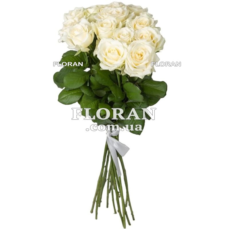 15 white roses, ribbon or packaging