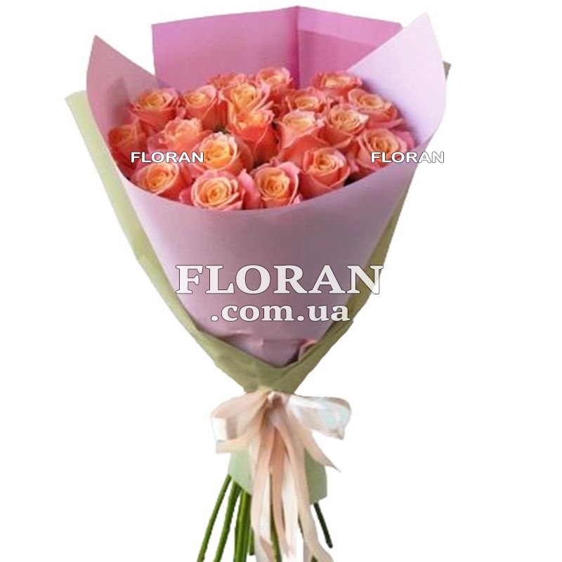 Bouquet of original peach roses - product code FL-2679 - is an amazingly colorful and bright gift. Here's what we can say about it: Miss Piggy Roses: These special roses are distinguished by their unique peachy hue and original appearance. They attract attention with their brightness. Vibrant Color: The peach color of roses symbolizes gratitude and respect. It is also associated with fun and joy. Liven up the Day: This bouquet can give bright emotions and liven up the day of the recipient. This is a great way to make it special. Gift for a Special Moment: This bouquet is suitable for special events and dates when you want to give an unforgettable gift. Professional Delivery: We guarantee that the bouquet will be delivered on time and in perfect condition thanks to our professional delivery service. A bouquet of 23 Miss Piggy roses is a sunny and original gift that will bring joy and improve your mood.