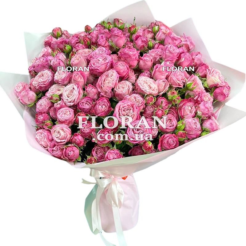 Bouquet of peony-shaped roses for birthday - product code FL-1405 - is a wonderful choice to congratulate and please the birthday man. In this bouquet you will find 31 pink spray roses, which will be a bright symbol of love, tenderness and admiration. The spray rose has a special beauty and elegance, and the peony shape of its flower gives it a special charm. 31 pink spray roses in a bouquet will be the epitome of luxury, beauty and sophistication. Its delicate petals and refined aroma will create an atmosphere of celebration and joy. The packaging, in which this bouquet will be neatly and beautifully decorated, will protect it and add mystery until it is unpacked. It will add a special charm and allow the bouquet to look even more attractive and stylish. Bouquet of peonies roses for a birthday is the perfect gift that will express your deep feelings and wishes for the birthday man. It will emphasize the peculiarity of this special day and will become a symbol of your love, respect and good wishes. We offer delivery of this beautiful bouquet of peony roses to any city so that you can please the birthday boy and create an unforgettable experience for him. Let us take care of the delivery and ensure that your gift arrives on time and in perfect condition. By choosing this bouquet of peony roses for your birthday, you will create a magical atmosphere and bring joy and a smile to the face of the birthday person. May this special day be filled with love, happiness and unforgettable moments!
