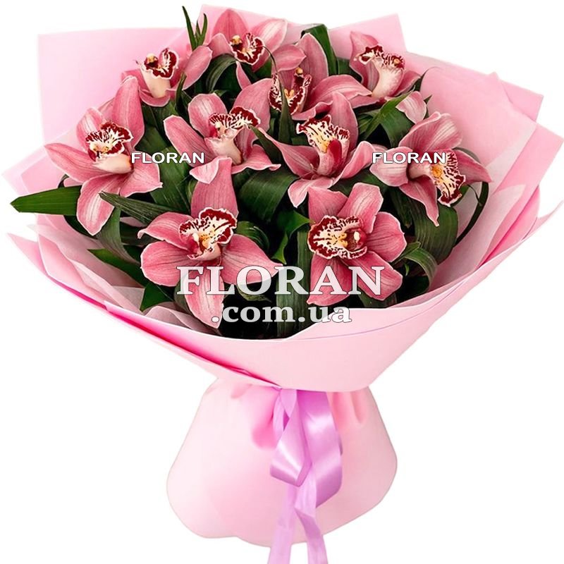 Bouquet of pink orchids - product code FL-1616 - is a real beauty that attracts the eye and creates an atmosphere of romance. Orchids symbolize grace, love and elegance. The pink color of orchids is a symbol of tenderness, sensuality and tender affection. This bouquet is ideal for a girl, grandmother or mother, because it expresses deep care and love. It will also give a smile and joy to your kuma, emphasizing her special place in your life. A bouquet of pink orchids will be a unique gift for a birthday, Anniversary, Mother's Day or any other special occasion. Our store proudly offers delivery of orchid bouquets to any city in Ukraine. We understand that your bouquet must be delivered on time and in impeccable condition in order to create maximum effect and joy for the recipient. Our team of experienced couriers carefully packs the bouquets and takes all necessary measures to keep them fresh and beautiful. No matter where the recipient is located - in Kyiv, Kharkov, Odessa, Lviv or any other city in Ukraine, we guarantee that your orchid bouquet will be delivered on time and with care. You can place an order on our website, indicating the required date and delivery address, and we will be happy to deliver your bouquet to please and surprise the important people in your life.