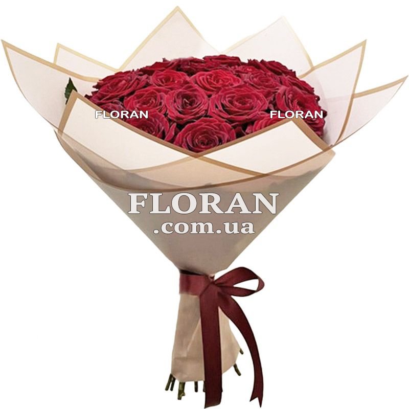 Bouquet of red color- product code FL-655. This bouquet of roses is a real find for those who want to please their loved ones or friends. It contains 23 red roses grown in Ukraine. A bouquet of Ukrainian roses is a guarantee of freshness and quality of flowers. Red colored roses symbolize passion and love, so this bouquet is perfect for those who want to express their feelings.
