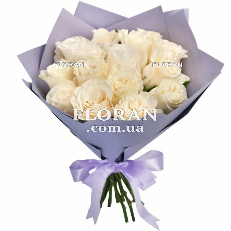 Bouquet of roses Mondial - product code FL-1716 - is an exquisite and elegant composition that will amaze with its beauty and grace. The 15 white imported Mondial roses featured have beautiful double buds and long stems that make this bouquet even more impressive. Such a bouquet of Mondial roses will be the perfect gift for various occasions and special moments in life. It is suitable for showing love and tenderness to your beloved, for expressing gratitude and appreciation to relatives or colleagues, as well as for support and attention to friends. White roses symbolize purity, tenderness and eternal love, which makes this bouquet even more special and meaningful. In our Floran online flower shop, you can easily order this beautiful bouquet of 15 white imported Mondial roses with packaging and deliver it to any corner of Ukraine. Our team of experienced florists and couriers guarantee the freshness and quality of each flower arrangement, as well as timely delivery, so that your bouquet will bring joy and smiles to those you intended it for. Treat your near and dear ones with this magnificent bouquet of Mondial roses, which will be remembered for a long time!