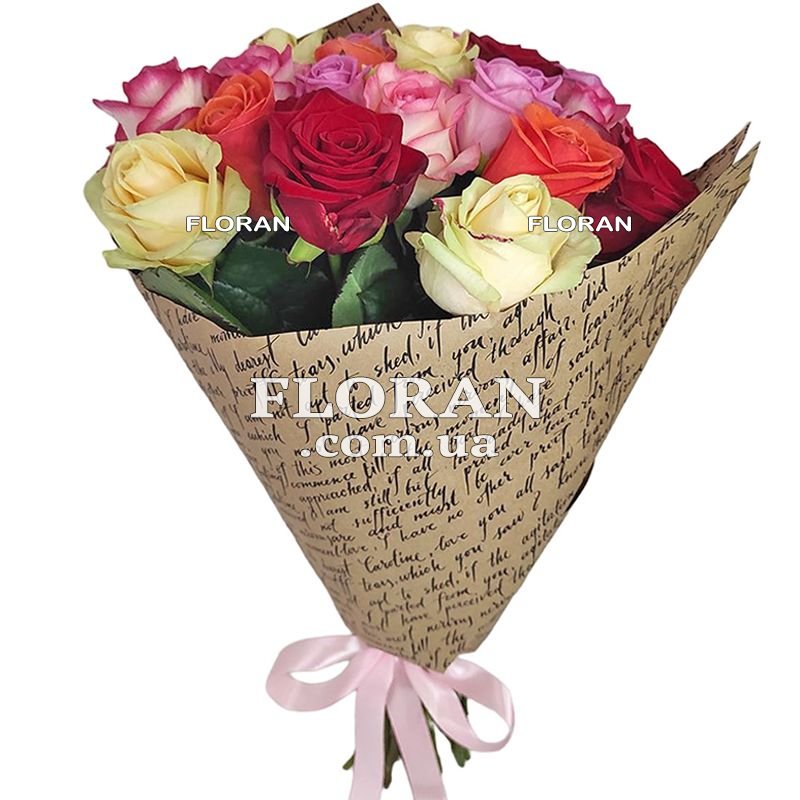 Bright bouquet of 21 roses - product code FL-2659 - is an exceptionally beautiful and expressive gift that radiates positive energy and symbolizes joy and admiration. Here are a few words about such a bouquet: Game of Colors: 21 different-colored roses are a real game of colors in one bouquet. Each rose has a unique and bright shade that creates an incredibly picturesque composition. Symbol of Joy and Brightness: This bouquet symbolizes the joy and brightness of life. He lifts the mood, brings positivity and happiness to every day. Ideal Gift: A bright bouquet of 21 roses is a perfect gift for any occasion. He can please a loved one on a birthday, anniversary, anniversary or even for no reason. Bouquet delivery: Our store guarantees professional delivery of bouquets. We will be happy to deliver this bright bouquet of 21 roses to the place you need and at the time convenient for you to make this day unforgettable for your recipient.