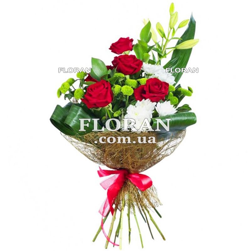 - 5 red roses: Red roses are a symbol of passion, strength and energy. Using 5 red roses in a business bouquet will emphasize determination and ambition, which can be especially suitable for a business gift.