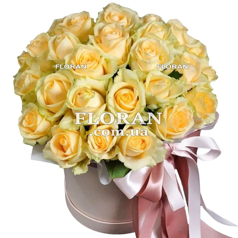 Buy flowers in a box - product code FL-1806. You can purchase a beautiful bouquet of 35 peach roses in a box. This composition of delicate and elegant roses will create an atmosphere of comfort and romance in any place. A box is a convenient way to present flowers, and it's a great gift for your loved ones or a loved one. Peach roses symbolize tenderness, trust and gratitude. This shade of rose creates an atmosphere of warmth and serenity, making it the perfect choice for a gift. A bouquet of peach roses will be a wonderful addition to any special moment or holiday. To purchase this beautiful composition in a box of peach roses, you can contact our store or use our online ordering service. We guarantee the freshness and quality of flowers, as well as prompt delivery of your order. You can choose the time and place of delivery that is convenient for you, be it your home, office or any other place where you would like to surprise the recipient with this beautiful bouquet. Do not miss the opportunity to please your loved ones or loved ones with a peach bouquet in a box. This wonderful gift will be a wonderful expression of your love, recognition or gratitude.
