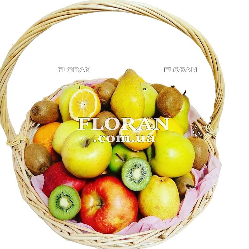 Festive fruit basket - product code FL-1991. Choosing a gift for a loved one is a responsible and sometimes difficult task. However, with the online store Floran.com.ua you can be sure that the gift will be appreciated. Here you will find a wide selection of presents that will be an excellent solution for a gift to your beloved, sister, mother, colleague or even a baby. Our fruit baskets are especially popular. These fragrant and fresh fruits are never out of place. Such a pleasure will definitely appeal to both children and adults. A festive fruit basket is a real embodiment of joy and freshness, which will give bright emotions and delicious pleasures. Hidden inside this magnificent composition are oranges, apples, pears and kiwi - a real palette of flavors and aromas. This basket is perfect for any occasion, be it a birthday, anniversary, wedding or other special moments. Fruits are not only tasty, but also healthy, and their combination creates a bright and appetizing composition. A festive fruit basket will be an unforgettable gift that will express your care and attention to close and dear people. Its freshness and brilliance will give a special mood to your holiday and will be remembered for a long time.