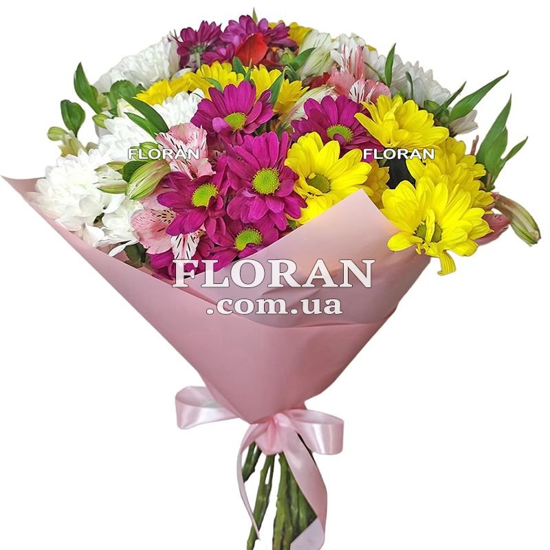 - 6 colorful alstroemerias. Alstroemerias are elegant and graceful flowers with delicate petals. Add a variety of flowers to give the bouquet a touch of sophistication and sophistication. Alstroemerias also symbolize wonderful feelings and the willingness to go through difficulties for the sake of a loved one.