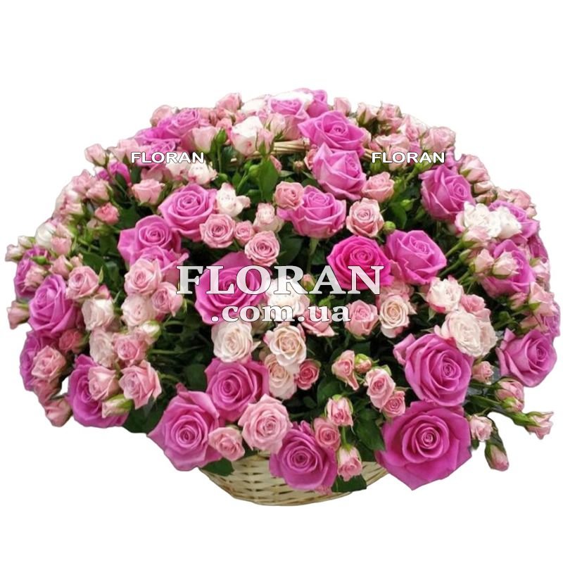 This exclusive flower basket will be a wonderful gift for any occasion, and will also look chic as an interior decoration. The composition of the basket includes not only ordinary roses, but also spray roses, which add elegance and sophistication to the image. This gift will definitely be remembered for many years and will give an endless amount of positive emotions!