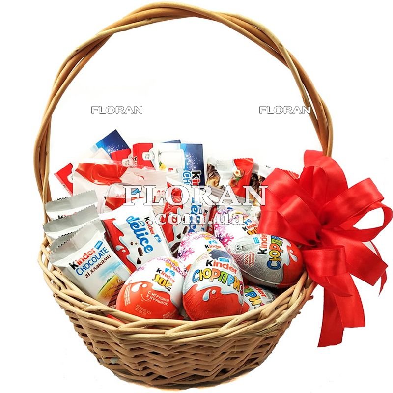 Kinder sweets basket - product code FL-2049. Ordering a sweet basket with Kinder just got easier! Our service allows you to enjoy the process of choosing and ordering without any hassle. Just a couple of mouse clicks or a message in the messenger, and your sweet wishes are already on their way to the addressee! Kinder sweets basket is a real joy for kids and not only. Delicate chocolates, cute surprises in each Kinder Surprise, crispy bars and incredibly tasty Kinder Delice and Kinder Country - all this awaits your little or adult gourmet. And imagine the moment when a basket with these sweets is delivered to your addressee. We are sure that the smile on his or her face will be bright and sincere. Indeed, in sweet moments there is something magical that can brighten up even the rainiest day and give many joyful moments. So do not miss the chance to please your loved ones or friends with such a sweet gift. Order a basket of Kinder sweets from us, and we will be happy to deliver it to the right place in the best possible way. Delivery by couriers is a guarantee that your gift will arrive safe and sound, ready to please its recipient. Even if it is a completely different city, it will not be difficult for us to deliver your gift on time and with a smile. So give joy, give sweet moments with our Kinder basket!