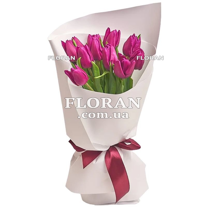 Lilac tulips - product code FL-2290 - are an incredibly beautiful and delicate choice for a bouquet. This shade of tulips symbolizes charm, tenderness and mystery. A bouquet of 11 lilac tulips will be an excellent gift for a girlfriend, wife or mother. Lilac tulips can express admiration and admiration for your beloved. It is also the perfect gift to create a romantic atmosphere on your special day. Such a bouquet will be a symbol of your tender feelings and care. When purchasing a bouquet of lilac tulips in our store, you can be sure of high-quality delivery. We guarantee timely and careful delivery of your gift to any corner of Ukraine.