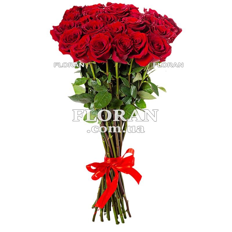 Long red roses - product code FL-751 - 23 exquisite red imported roses decorated with ribbon, it is the embodiment of passion and strong emotions. These luxurious red roses are a symbol of sincere love and affection. Their rich red color speaks of passionate feelings and deep attractiveness. Each bud radiates strength and energy, giving magical moments of unforgettable emotions. We present this unique bouquet that will be a bright gift for your special woman. Each rose is carefully selected and brought especially for you from the best places. Its excellent appearance and unique aroma will amaze and delight you. This bouquet of long red roses is suitable for a variety of occasions - from romantic dates to festive moments. It will be a wonderful gift for a Birthday, Anniversary, Anniversary or just to show your sincere feelings. Delivery of roses in Kyiv is carried out by our experienced couriers who guarantee timely and careful delivery. Our team values each client, and therefore we provide only the best flowers and service. Order this amazing bouquet of long red roses today and give your beloved moments of passion and tenderness! She will be delighted with such a wonderful gesture and will keep this gift in her heart forever.