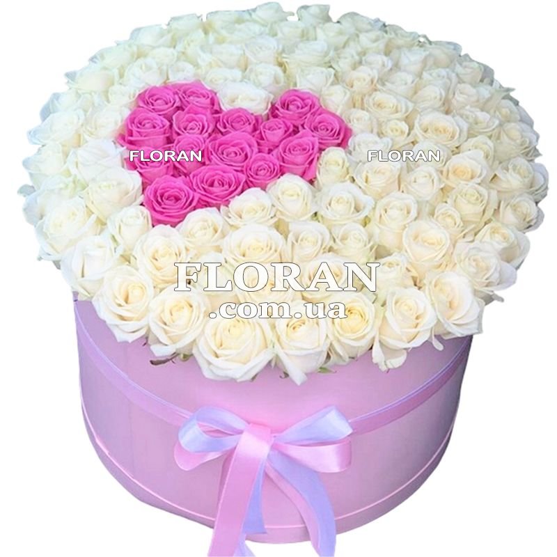 Luxury box of roses - product code FL-1815 - is an exceptional and luxurious gift that will not leave anyone indifferent. This bouquet contains 101 white and pink roses that create a stunning combination of beauty and elegance. White and pink roses are symbols of purity, tenderness, love and elegance. They convey a deep feeling and tenderness, admiration for their graceful petals and wonderful aroma. This bouquet combines these two beautiful shades to create an impressive look. In the center of the bouquet, on a white background, there is a pink heart. It symbolizes love, passion and affection, making this bouquet even more romantic and meaningful. This is a great addition that gives the bouquet a special charm and makes it stand out from the others. An elite box containing roses adds luxury and romance to this gift. It serves not only to protect roses from damage, but also is a design element that gives the bouquet sophistication and uniqueness. The white background in the box perfectly emphasizes the beauty of the roses and allows them to stand out from the background. This bouquet of roses in a luxury box with a pink heart and 101 white and pink roses is ideal as a gift for special occasions such as birthdays, wedding anniversaries or simply to express deep love and care for a loved one. An elite box of roses with a pink heart and 101 white and pink roses will be a real highlight of any event and decorate any interior. It is a manifestation of luxury, style and sophistication. This bouquet will become an unforgettable symbol of attention and love, which will leave a lasting impression on its recipient. By choosing this elite bouquet of roses, you make a special and unforgettable gift that will delight and delight your recipient. White and pink roses combined with a pink heart create a beautiful image of love and affection. This bouquet will be a reminder of your love and care for a long time.