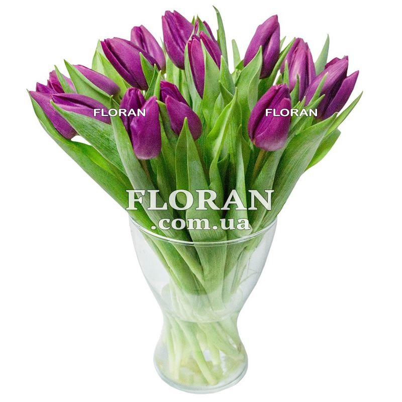 Purple tulips bouquet - product code FL-2347 - is an elegant and sophisticated gift that is suitable for different occasions and recipients. The color purple symbolizes luxury, respect and magic. By giving a bouquet of purple tulips, you will express your gratitude and respect for the recipient. This color is also associated with mystery and willpower, making purple tulips an excellent choice for gifts to friends, colleagues, and for important business events. As for delivery, our store guarantees high-quality and reliable delivery of bouquets to different cities. We understand that every flower is important, and our couriers will carefully deliver your gift to its destination. The recipient's emotions are very important to us, and we strive to make every flower message delivered special and joyful.