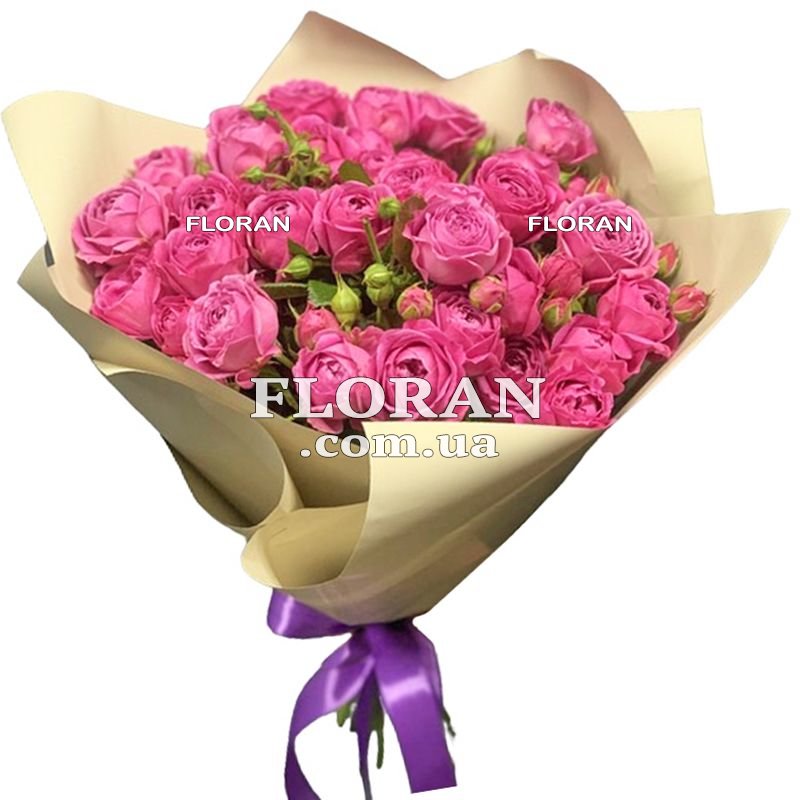 Rose misty bubbles - product code FL-124. Misty bubbles roses are a bouquet of branch roses, which are distinguished by their special elegance and beauty. A bouquet of 19 Misty Bubbles peony roses is just magic! These delicate roses with a pronounced center will shine with their beauty and add romance to any moment. Each rose has a rich hue that immediately grabs attention. The aroma of these flowers is like a gentle kiss of a summer breeze on the cheek. This bouquet is ideal to give it to your loved one, relative or friend, to express your love, gratitude or just wish you happiness. Misty Bubbles roses have a unique charm and beauty, and this bouquet will definitely not leave anyone indifferent!