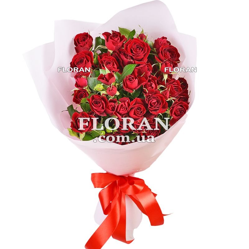 Small bouquet of red roses - product code FL-112. This bouquet of spray roses makes the perfect gift for any occasion. It contains 7 red spray roses, which symbolize love and passion. A bouquet of spray roses is a timeless and beautiful gift that is suitable for any age and gender. Red spray roses are a symbol of passion and love, so this bouquet of branch roses will be a great gift for your loved one. Red roses are a classic that will never go out of style. A bouquet of spray roses is a great way to express your feelings and show attention to a loved one. Present this bouquet of branch roses and you will not go unnoticed.