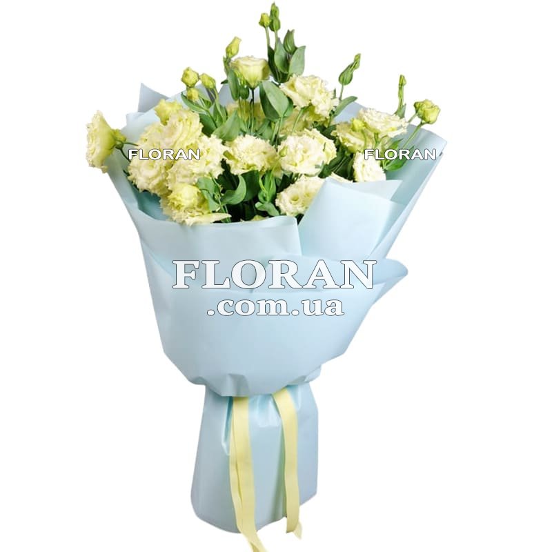 Small bouquet of eustoma - product code FL-1015. A small bouquet of 5 white eustomas is a delicate and elegant gift that has a special charm. The white color of eustoma symbolizes purity, tenderness and innocence. This bouquet will be the perfect choice for expressing tender feelings and wishes.