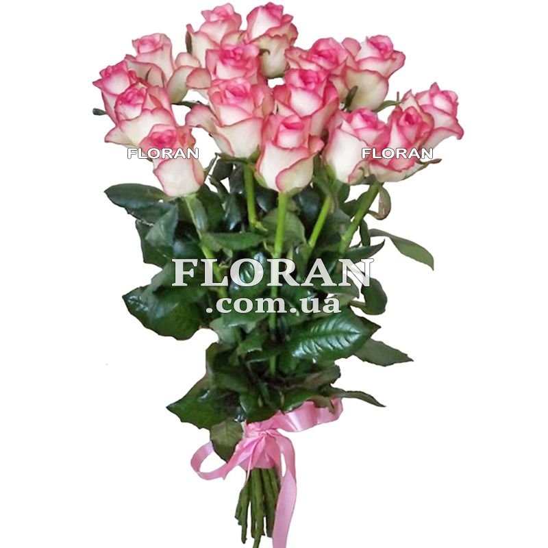 Two-color Jumilia roses in a bouquet - product code FL-2671 - this is an amazing combination of colors and symbolism of roses of different shades. Here's what we can say about this bouquet: Unique Combination: Bicolor roses, such as Jumilia roses, are a unique combination of two or more shades on one rose. This makes each rose in the bouquet truly unique and inimitable. Symbol of Love and Respect: Red roses in this bouquet can symbolize passion and love, while pink roses can symbolize tenderness and respect. This bouquet is ideal for expressing deep feelings for a loved one. Ideal for a Romantic Gift: This bouquet makes the perfect romantic gift for your other half or someone you want to surprise. A Bright Embodiment of Harmony: Two-color roses in a bouquet create an amazing feeling of harmony and balance between different aspects of a relationship. Professional Packing: The bouquet will be professionally packed to preserve the freshness and beauty of the roses upon delivery. A bouquet of 15 two-color Jumilia roses is a wonderful way to express your feelings and delight the recipient with the unique beauty and symbolism of roses of different shades.