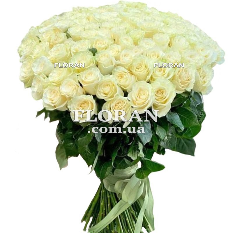 101 белая импортная роза, лента или упаковка