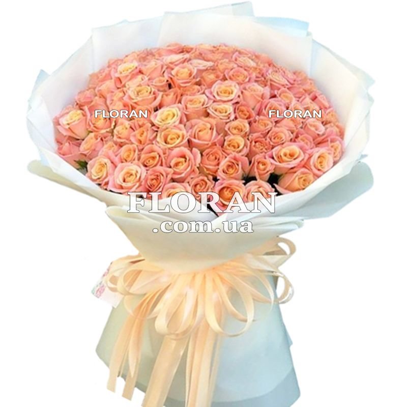 101 роза мисс пигги в букете - код товара FL-1461 - высотой 60 см будет великолепным и оригинальным подарком. Розы Miss Piggy отличаются своим уникальным и привлекательным цветом, который сочетает в себе оттенки персикового и розового. Эти розы являются прекрасным выбором для создания нежного и романтического букета. Их яркий и сочный оттенок привлекает внимание, а нежные лепестки придают им изысканный вид. Букет из 101 розы Miss Piggy будет символизировать нежность, тепло и любовь.Вы можете заказать этот уникальный букет у наших опытных флористов. Они с радостью помогут вам создать элегантную композицию, учитывая ваши предпочтения и желания. Мы также предлагаем различные варианты оформления и декора, чтобы ваш букет был по-настоящему особенным. Помимо этого, мы предоставляем услугу доставки, чтобы ваша мама могла получить этот прекрасный букет прямо в руки. Это создаст ещё больше впечатлений и сделает подарок ещё более особенным. Букет из 101 розы Miss Piggy высотой 60 см станет прекрасным выражением вашей любви, восхищения и благодарности к вашей маме. Он будет наполнен нежностью, теплом и уникальностью, и ваша мама будет безусловно восхищена этим прекрасным подарком.
