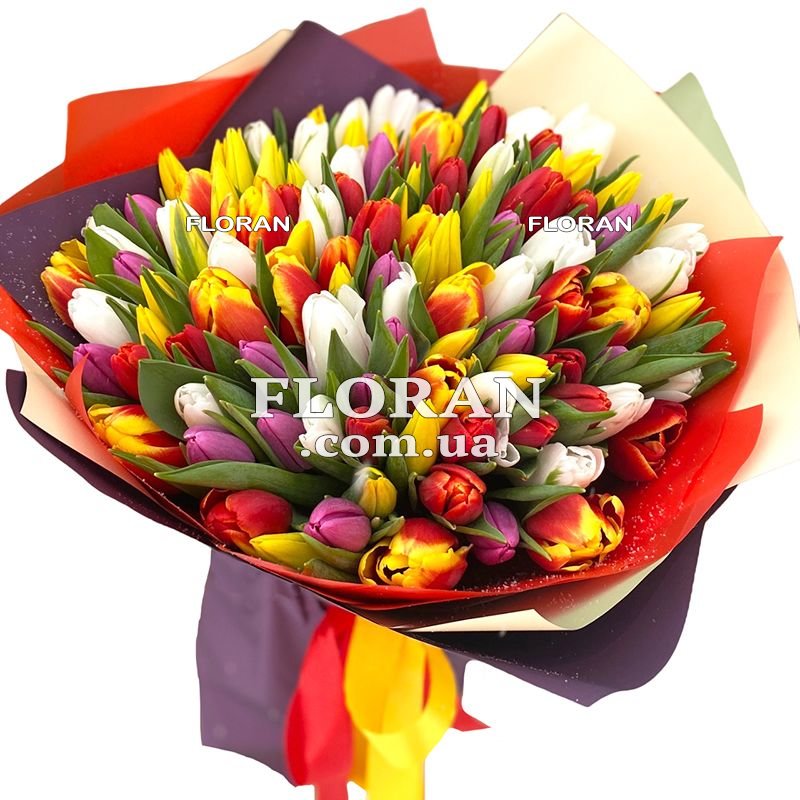 101 тюльпан букет - код товара FL-2428 - это великолепный и впечатляющий подарок, который выразит ваши самые глубокие чувства и внимание к получателю. Тюльпаны считаются цветами весны и обещания новой жизни. Они дарят свежесть, радость и надежду, что делает их идеальным выбором для выражения любви, уважения и благодарности. Букет из 101 тюльпана также олицетворяет долговечность ваших отношений и желание праздновать каждый день, проведенный вместе. Красивое сочетание разноцветных тюльпанов добавляет живописности и эмоциональной глубины вашему подарку. Наша служба доставки цветов гарантирует, что ваш букет попадет в нужное место и в нужное время, даря радость и удовлетворение получателю. Большой букет из 101 тюльпана будет приятным сюрпризом для любого человека, будь то ваши родные, друзья или ваша вторая половинка. Мы предлагаем надежную и аккуратную доставку в разные места, включая анонимную доставку, если вы предпочли бы оставаться инкогнито, пока сделаете приятный сюрприз вашим близким. Наслаждайтесь моментом и делитесь радостью с этим великолепным букетом тюльпанов.