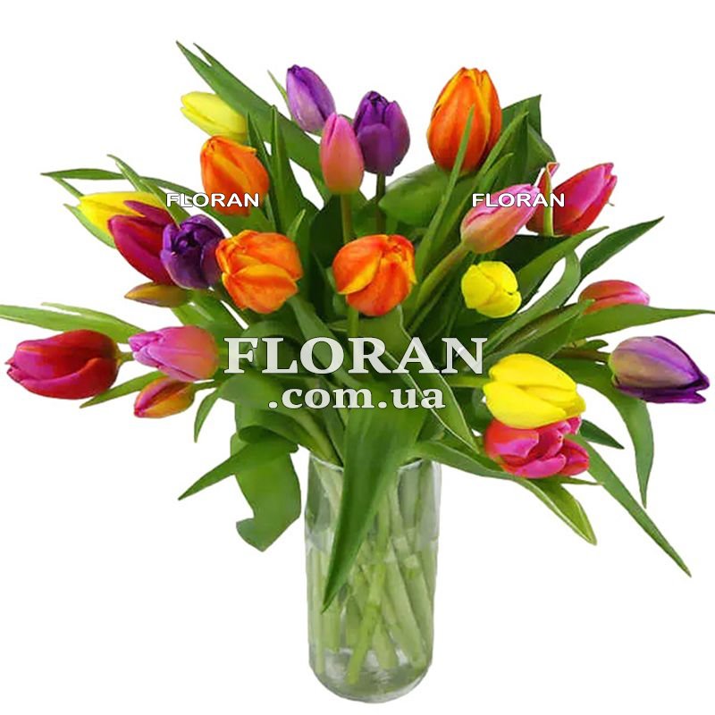 23 разноцветных тюльпана - код товара FL-2391 - это великолепный подарок, который может олицетворять разнообразие чувств и радости. Тюльпаны, как символ весны и обновления, могут приносить свежесть и яркие эмоции в любую жизненную ситуацию. Каждый цвет тюльпана может нести свой собственный смысл. Например, красные тюльпаны символизируют страсть и настоящую любовь, желтые - радость и счастье, а розовые - нежность и уважение. Такой разноцветный букет подходит для различных случаев, будь то романтическое свидание, поздравление с праздником или проявление благодарности. Заказывая букет в нашем магазине, вы можете быть уверены в свежести и красочности тюльпанов. Мы также предоставляем удобную доставку, включая возможность доставки в выходные и в праздничные дни. Таким образом, ваш сюрприз будет особенным и незабываемым. Подарите яркие эмоции с помощью 23 разноцветных тюльпанов!