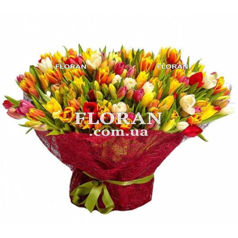 301 тюльпан - код товара FL-2413 - это действительно впечатляющий и великолепный подарок. Тюльпаны считаются одними из самых изысканных и красивых цветов, и в сочетании с таким большим количеством разных цветов, они могут символизировать множество значений. 301 тюльпан - это проявление вашей безмерной любви, уважения или признания в каких-либо заслугах. Этот букет можно подарить на самые важные события, будь то свадьба, юбилей, годовщина или другой важный день. Упаковка букета поможет сохранить свежесть цветов, а услуги доставки обеспечат то, что ваш подарок дойдет до получателя вовремя и с достоинством. Этот великолепный букет будет замечательным проявлением ваших чувств и наверняка принесет немало радости и восхищения тому, кому вы решите его подарить.
