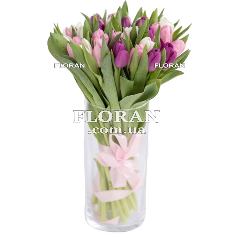 35 тюльпанов - код товара FL-2388 - это яркое и впечатляющее проявление вашего внимания и заботы. Тюльпаны являются символами весны и свежести, и такой букет придаст праздничное настроение и радость получателю. Каждый цвет тюльпана может нести свой собственный символический смысл. Например, красные тюльпаны олицетворяют страсть и глубокие чувства, желтые тюльпаны ассоциируются с радостью и счастьем, розовые тюльпаны символизируют нежность и уважение. Таким образом, букет из 35 разноцветных тюльпанов может быть великолепным способом выразить разнообразие ваших чувств и пожеланий. Этот букет подходит для множества разных случаев, будь то день рождения, юбилей, праздник или просто желание сделать приятный сюрприз. Он также может быть знаком внимания и уважения к получателю. При заказе в нашем магазине вы можете быть уверены в том, что получите свежие и красочные тюльпаны, которые будут радовать вас и вашего близкого человека. Мы также гарантируем своевременную доставку, чтобы сделать ваш подарок еще более особенным. Подарите радость и красоту с букетом из 35 разноцветных тюльпанов!