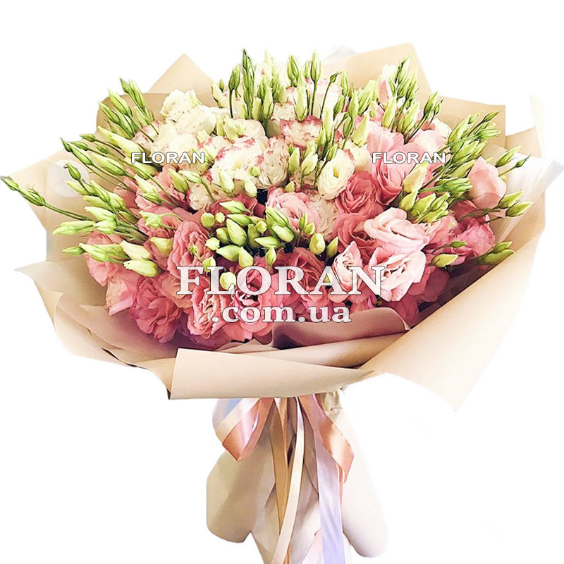 Белые и розовые эустомы - код товара FL-1017. Нежный букет из белых и розовых эустом – это прекрасный выбор для вашей любимой девушки. Комбинация этих двух нежных оттенков создаст романтическое и нежное настроение, подчеркивая ее красоту и изящество. Состоящий из 35 белых и розовых эустом, этот букет станет символом вашей любви и заботы. Белые эустомы символизируют чистоту, нежность и искренность чувств, а розовые эустомы добавляют нотку романтики и нежности.