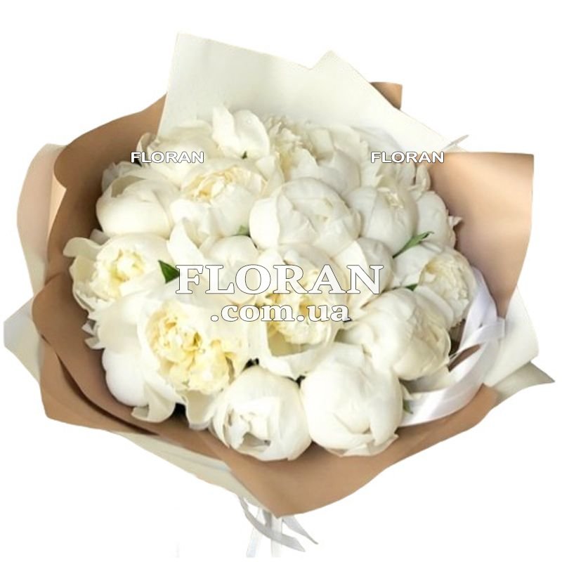 19 белых импортных пионов, упаковка