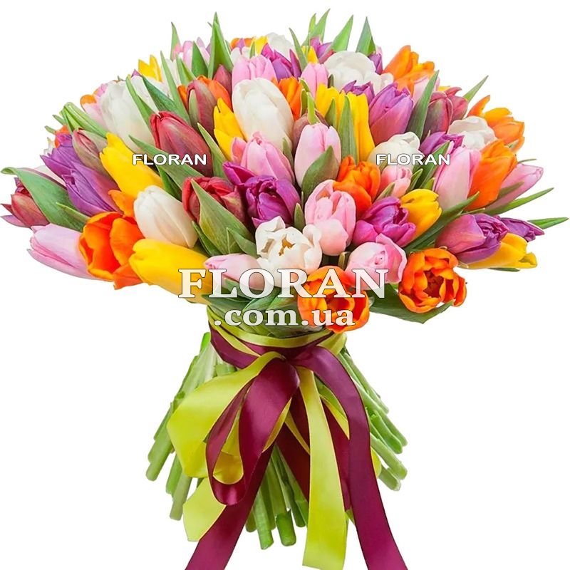 Большой букет цветов тюльпаны - код товара FL-2302 - это исключительно впечатляющий подарок, который приносит радость и восторг в любую особенную момент в жизни. Тюльпаны считаются символом весны и свежести, а также выразителем нежности и внимания. Этот великолепный букет подходит для любых случаев - от дней рождения и свадеб до дня святого Валентина и юбилеев. 85 разноцветных тюльпанов, объединенных в этом букете, создадут неповторимую атмосферу и море радости. Они подходят как для женщин, так и для мужчин, и идеально выражают ваши чувства и уважение. Мы гордимся предоставлением высококачественного сервиса доставки, и этот великолепный букет не исключение. Наши курьеры будут рады доставить его в нужное вам место вовремя, чтобы сделать этот особенный день незабываемым. Дарите красоту и яркие эмоции с этим великолепным букетом тюльпанов!
