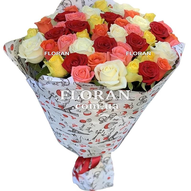 Большой букет разноцветных роз - код товара FL-2663 - это настоящее произведение искусства, которое обладает невероятной красотой и символикой. Вот что можно сказать об этом букете: Пестрое Многообразие: Разноцветные розы в этом букете представлены в самых разных оттенках, что создает неповторимое пестрое многообразие цветов. Этот букет олицетворяет разнообразие чувств и эмоций. Яркие Эмоции: Подарив такой букет, вы подарите невероятно яркие и положительные эмоции. Разноцветные розы могут символизировать любовь, уважение, радость, дружбу и благодарность – все, что может вызвать радость у получателя. Подарок на Особый Случай: Этот букет идеально подходит для особых случаев, таких как юбилеи, дни рождения, свадьбы или другие праздники. Он будет удивительным украшением любого торжества. Профессиональная Доставка: Наш магазин предлагает профессиональную услугу доставки. Мы гарантируем, что букет будет доставлен в сохранности, сохраняя свою свежесть и красоту. Индивидуальность Подарка: Каждый букет из разноцветных роз уникален, именно как уникальны эмоции и отношения между вами и получателем. Этот букет – это проявление вашей заботы, внимания и уважения к человеку, которому вы его дарите. Пусть он принесет в жизнь получателя радость и яркие моменты счастья.