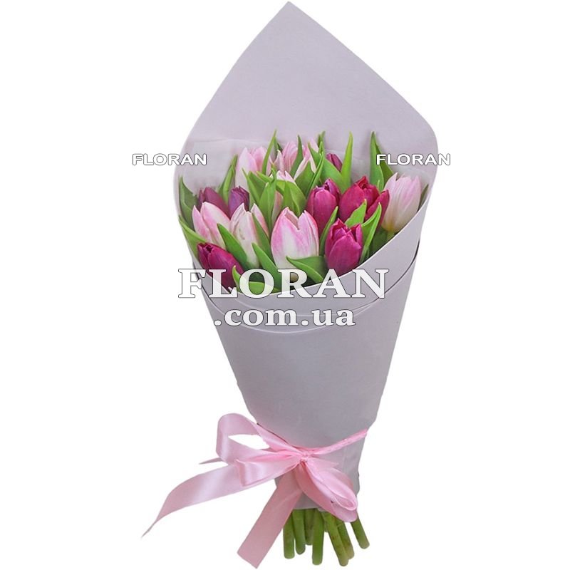 Букет 15 тюльпанов - код товара FL-2274 - это потрясающий способ создать яркое и незабываемое впечатление в любом месте. Сочетание розовых и сиреневых тюльпанов придает букету особый шарм и нежность. Он идеально подойдет для подарка вашей возлюбленной, сестре, подруге или даже коллеге. С нашей удобной доставкой, вы можете украсить им как особенное событие, так и будний день. Например, вы можете заказать букет для украшения романтического ужина в кафе. Тюльпаны добавят нотку романтики и уюта в атмосферу вечера. Также этот букет станет замечательным подарком для сотрудника, например, в качестве благодарности за хорошую работу. Доставьте радость и улучшьте настроение в аптеке, офисе или салоне красоты. Когда вы дарите красоту и яркие краски, место не имеет значения - букет всегда придет как к лицу.