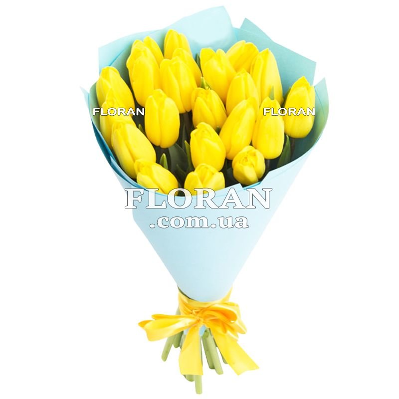 Букет 21 тюльпан - код товара FL-2313 - это яркий и радостный подарок, который идеально подходит для выражения дружбы, радости и счастья. Желтые тюльпаны символизируют радость, солнечное настроение и дружелюбие. Этот букет поднимет настроение и принесет улыбку на лицо вашему близкому. Он отлично подойдет для дарения друзьям, коллегам, родственникам или тому, кто вам близок. Также букет из 21 желтого тюльпана может стать замечательным подарком к какому-либо радостному событию или просто чтобы подарить тепло и свет в серых буднях. Наши курьеры гарантируют надежную доставку этого солнечного букета в нужное вам место, чтобы ваше поздравление действительно достигло сердца получателя и озарило его день яркими красками.