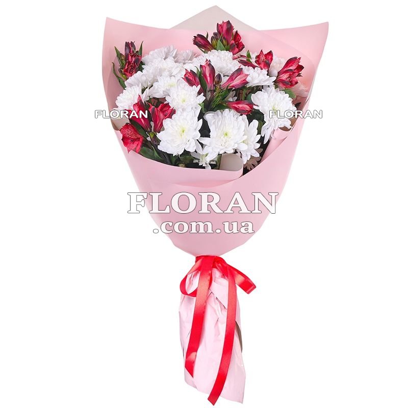 Букет цветов для подруги - код товару FL-1266 - это замечательный способ выразить свою дружбу, благодарность и заботу о ней. В этом букете сочетаются несколько видов цветов, которые подчеркнут особенность вашей дружбы и создадут атмосферу радости и веселья. В этом букете присутствуют 5 красных альстромерий. Красный цвет альстромерий символизирует страсть, энергию и силу дружбы. Он выражает ваше глубокое уважение и преданность подруге, а также является символом счастья и радости. Также в составе букета находятся 6 белых хризантем. Белый цвет хризантем ассоциируется с чистотой, нежностью и искренностью. Они символизируют вашу искреннюю дружбу, преданность и благополучие. Белые хризантемы добавляют букету свежести и привлекательности. Букет оформлен с заботой и стильно упакован в подходящую обертку, чтобы подчеркнуть его красоту и особый смысл. Упаковка может быть оформлена с использованием лент, бантиков или других элементов, которые придают ей особый шарм. Такой букет цветов для подруги станет прекрасным подарком, который выразит вашу дружбу, поддержку и благодарность. Он создаст теплую атмосферу и принесет улыбку на лицо вашей подруге. Этот букет станет прекрасным символом вашей сильной и долговечной дружбы, которая ценится и любима.