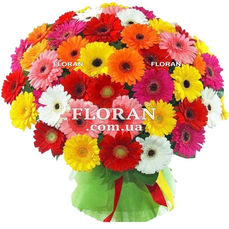 Букет гербер девушке - код товара FL-1563 - это великолепное и впечатляющее проявление внимания и заботы к особенной девушке. Этот букет привнесет в ее жизнь море ярких красок и позитивных эмоций, станет настоящим символом вашей любви и восхищения. Каждый гербер в этом букете несет в себе свою уникальность и красоту. Они представлены самыми разнообразными оттенками: от нежных пастельных тонов до ярких и насыщенных цветов. В сочетании они создают гармоничное и привлекательное общее впечатление. Герберы, благодаря своим крупным и ярким головкам, притягивают взгляды и внимание окружающих. Они символизируют красоту, радость, нежность и оптимизм. Букет из 85 гербер станет настоящей витриной цветочной эстетики и подарит незабываемые моменты радости и удивления. Для завершения этого прекрасного букета предлагается использовать ленту. Лента является символом связи и объединения. Она добавляет изящество и элегантность букету, подчеркивая его красоту и значимость. Вы можете выбрать ленту того цвета, который особенно нравится вашей возлюбленной, или тот, который символизирует что-то особенное для вас. Этот букет из 85 разноцветных гербер - это не просто цветочный подарок, это выражение ваших глубоких чувств и признание в любви. Он говорит о вашем желании принести радость и счастье в жизнь вашей возлюбленной и о вашей готовности делить с ней самые яркие и прекрасные моменты. Подарите этот удивительный букет гербер своей возлюбленной, и вы увидите, как она расцветет от счастья и восхищения. Этот букет запомнится ей надолго и будет напоминать о вашей нежной и красивой любви. Он будет радовать ее глаза и сердце каждый раз, когда она взглянет на эту цветочную композицию.