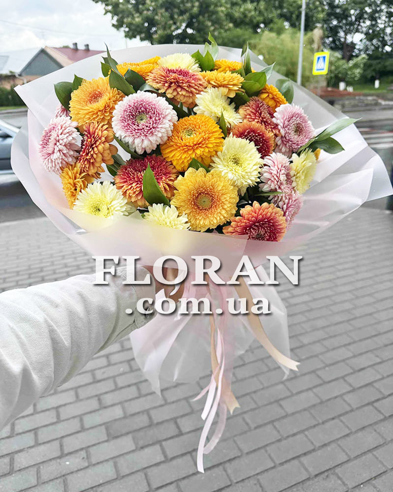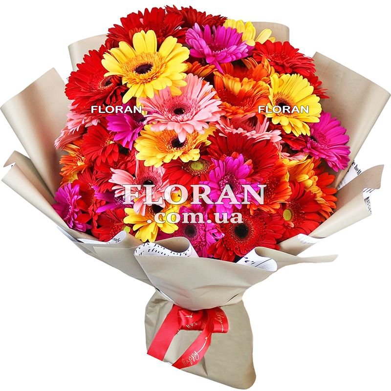 Букет гербер с Днем рождения - код товара FL-1556 - идеальный подарок, чтобы подчеркнуть радость и праздничное настроение этого особенного дня. Разноцветные герберы символизируют радость, жизнерадостность и яркость, что делает их идеальным выбором для такого радостного события. Комбинация разноцветных герберов в букете создает впечатляющий и яркий образ, который точно привлечет внимание и запомнится получателю. Каждый гербер имеет свою отдельную окраску, от ярко-красного и солнечно-желтого до нежно-розового и освежающего голубого, что добавляет разнообразия и красоты этому букету. Упаковка букета придает ему завершенный и элегантный вид, гарантируя сохранение свежести и красоты цветов до момента вручения. Когда именинник увидит этот букет, он почувствует вашу заботу, любовь и желание поздравить его в особенный и яркий способ. Мы также рады сообщить, что осуществляем доставку нашего букета герберов по всем городам, включая Нововолынск, Звягель, Смелу и Мукачево. Вы можете быть уверены, что ваш подарок будет доставлен вовремя и в прекрасном состоянии, чтобы подарить радость и улыбку имениннику. Поздравьте именинника с Днем рождения великолепным букетом герберов и подарите ему яркие эмоции и счастливые моменты, которые запомнятся надолго. Этот букет станет символом вашей радости и пожеланием самых наилучших и светлых моментов в его жизни.