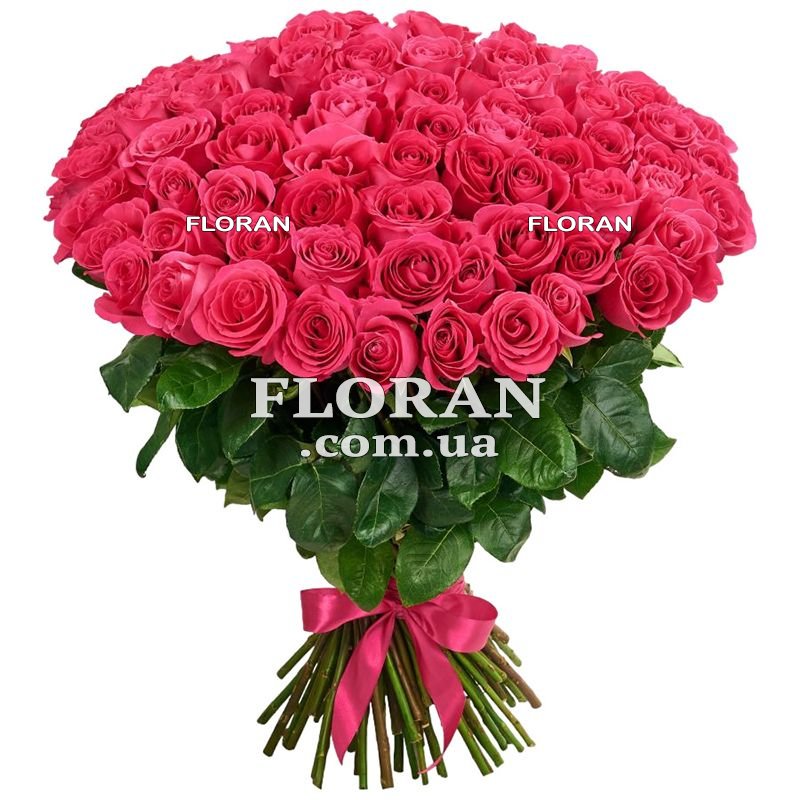 101 розовая импортная роза, лента или упаковка