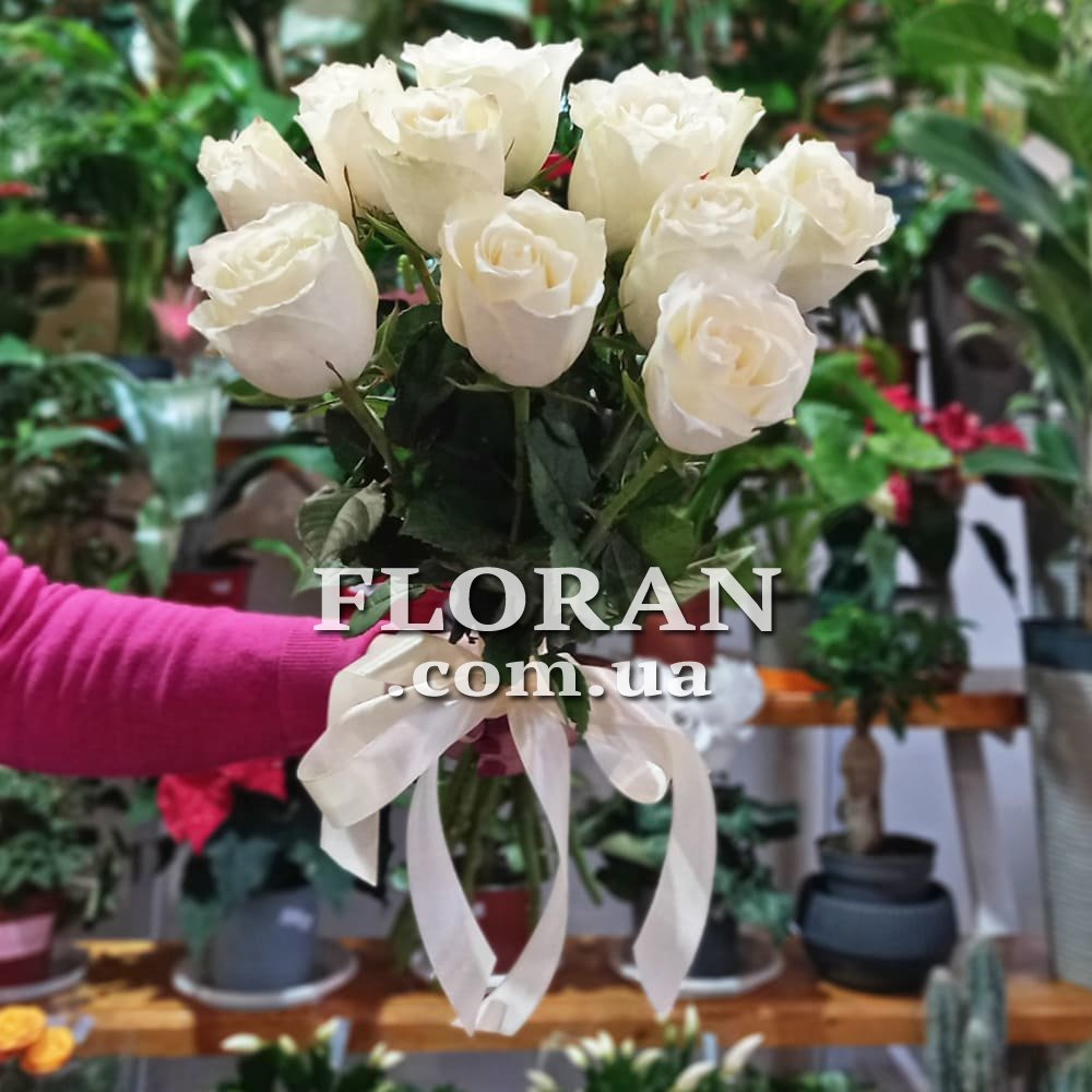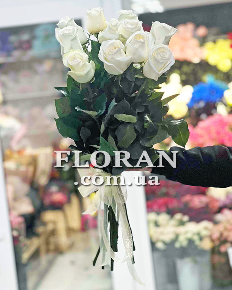 Букет из 11 белых роз - код товара FL-773 - это великолепный проявление нежности и элегантности. Белые розы символизируют чистоту, невинность и искренние чувства. Этот небольшой, но изящный букет станет прекрасным подарком для того, кого вы хотите удивить и порадовать своим вниманием. Каждая из 11 белых роз, тщательно отобранная, будет сиять своей красотой и свежестью. Эти импортные розы отличаются высочайшим качеством и красотой своих крупных бутонов. Сочетание белых роз с нежной зеленью придаст этому букету особую гармонию и изысканность. Украшенный лентой, этот букет из 11 белых роз обретает особое очарование. Лента может быть подобрана в соответствии с предпочтениями получателя или особым событием, чтобы придать букету индивидуальность и особенность. Этот небольшой букет из 11 белых импортных роз может с легкостью передать глубокие эмоции и выразить самые искренние чувства. Он идеально подходит для того, чтобы поздравить с днем рождения, юбилеем, проявить внимание и заботу, а также просто сделать приятный сюрприз. Неважно, к какому поводу вы хотите подарить этот букет из 11 белых роз - он всегда будет являться знаком внимания и заботы. Белые розы обладают универсальностью и восхитительной красотой, которая всегда будет оценена и радостно принята. Заказав букет из 11 белых импортных роз с лентой, вы сможете передать свои чувства и пожелания наилучшим образом. Флористы сделают этот букет неповторимым и особенным, чтобы каждая роза засияла во всей своей красе. Ваш подарок станет приятным сюрпризом и принесет массу положительных эмоций вашему близкому человеку.
