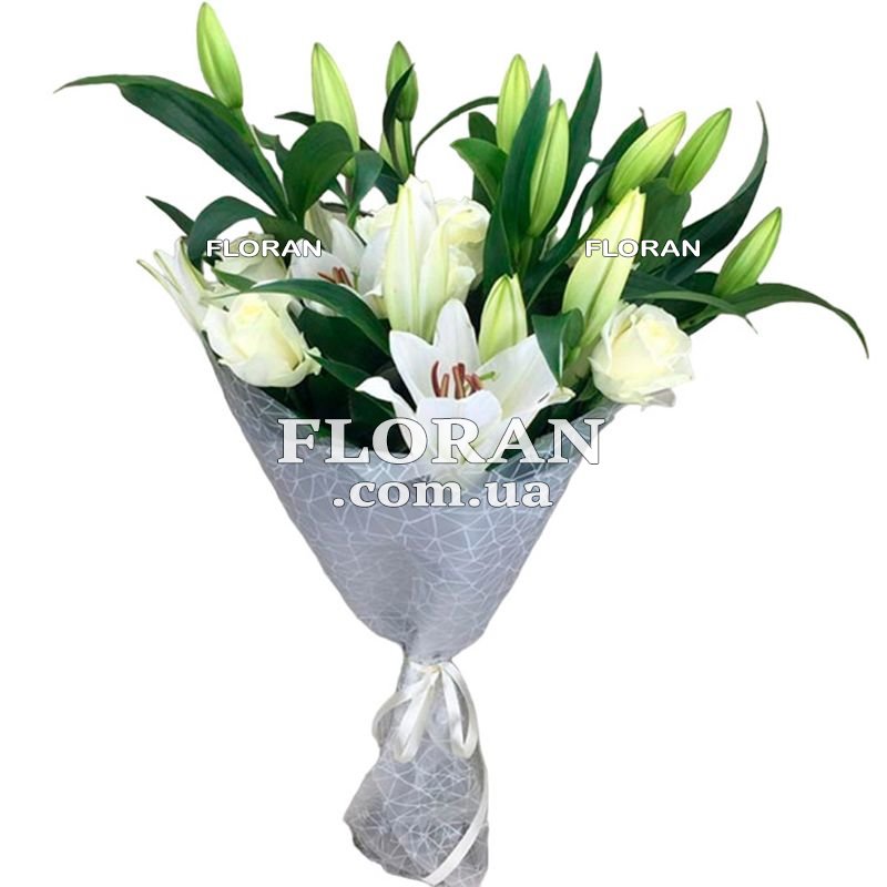 Букет из белых лилий и роз - код товару FL-1160. Вот букет из белых лилий и роз, который будет великолепным подарком: