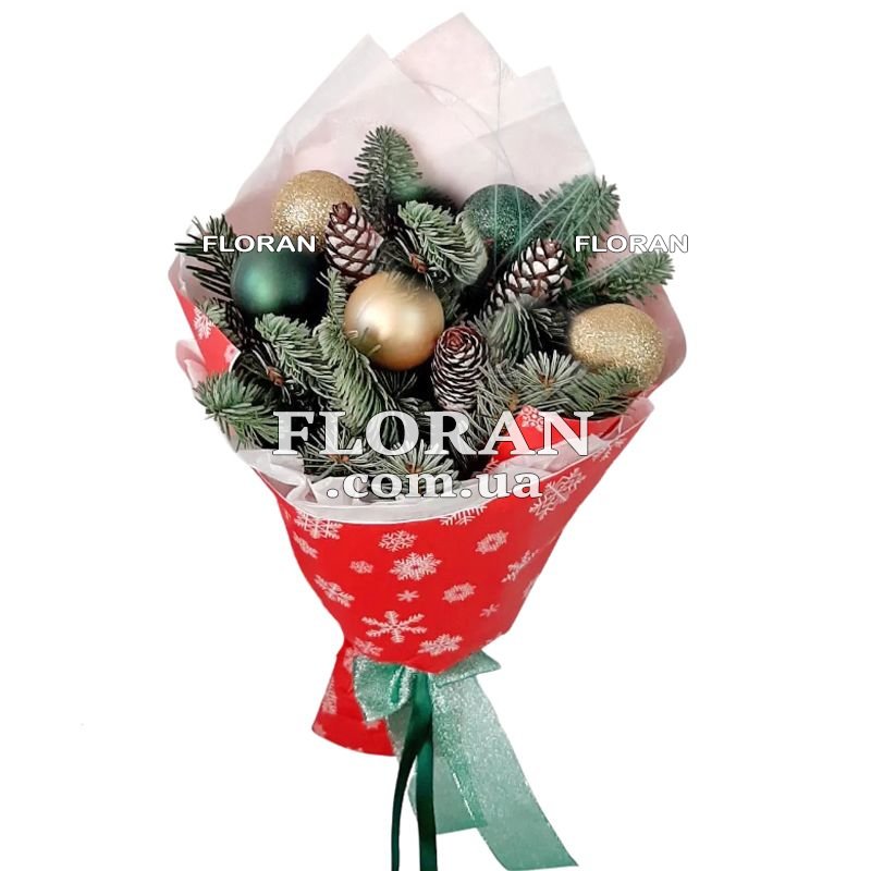 Букет из елки на новый год - код товара FL-616. Новогодний букет из елки - это прекрасный способ украсить праздничный стол или подарить близким на Новый год. Он состоит из красивых елочных шаров, которые располагаются вокруг веток ели. Такой букет из елки не только красив, но и очень удобен в использовании. Он не требует особого ухода, не завянет и не поблекнет со временем. Кроме того, его можно легко переносить с места на место, не беспокоясь о том, что цветы повредятся или рассыпятся. Это отличный выбор для тех, кто хочет сделать сюприз. Маленький букет из елки на новый год станет настоящим украшением любого дома и подарит массу положительных эмоций.