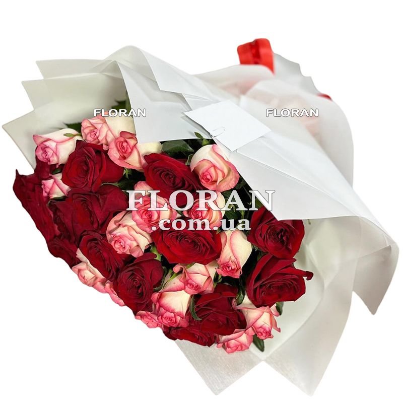 31 красная роза и роза Джумилия, упаковка