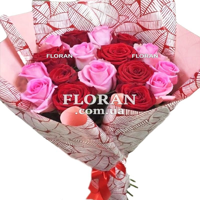 Букет из разноцветных роз - код товара FL-711. Представьте себе яркий и живописный букет из разноцветных роз, состоящий из 17 красных и розовых роз. Этот букет является идеальным сочетанием страсти и нежности, добавляя в вашу жизнь краски и радость. Красные розы, символизирующие страсть и любовь, в сочетании с розовыми розами, которые выражают нежность и романтику, создают прекрасный контраст и гармонию. Этот букет позволит вам выразить свои глубокие чувства и создать особенные моменты вместе с вашим близким человеком.